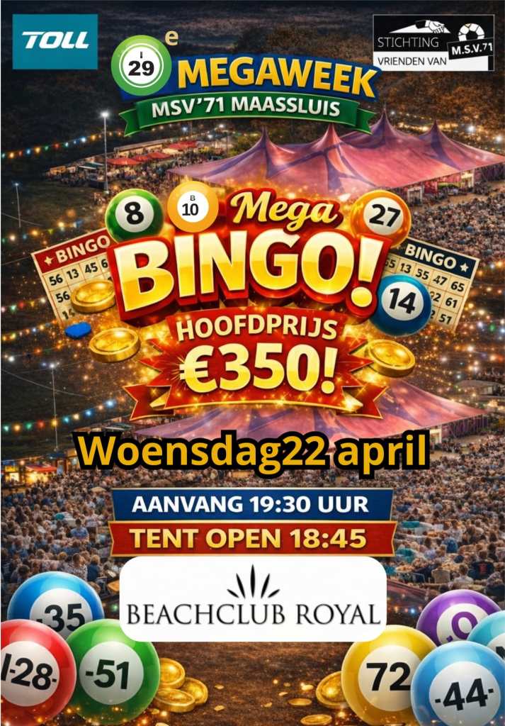 De 29e M.S.V.’71 Megaweek staat woensdag 22 april volledig in het teken van gezelligheid voor jong en oud. Overdag kunnen alle kleintjes genieten van een hele leuke Kindermiddag en ’s avonds is het tijd voor oudere jongeren bij de Mega Bingo avond.